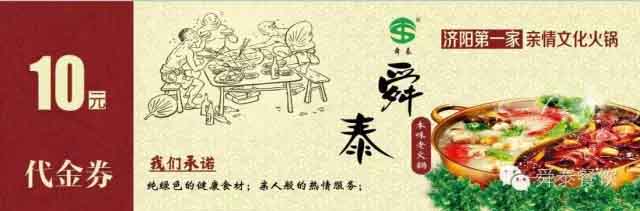 "舜泰廚房"就餐滿一百元菜金送10元代金券
