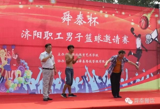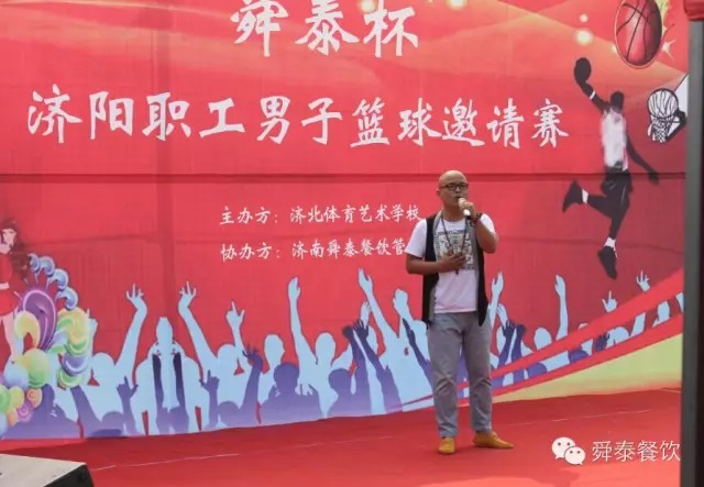 2015年7月25日上午九時(shí),由濟(jì)北體育藝術(shù)學(xué)校主辦、濟(jì)南舜泰餐飲管理有限公司協(xié)辦的“舜泰杯—2015濟(jì)陽職工男子籃球邀請賽”如期拉開帷幕。濟(jì)陽電視臺主持人王璇璇宣布本次活動(dòng)的意義和比賽事宜。