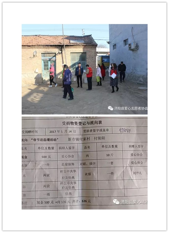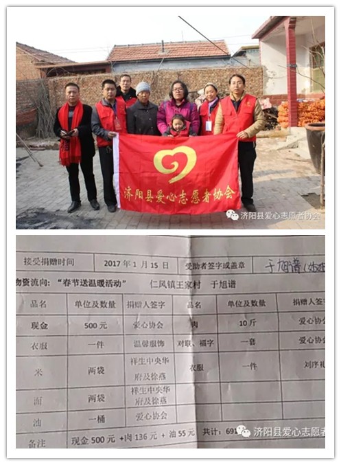 2017年1月14號(hào)早上八點(diǎn)濟(jì)陽縣愛心志愿者協(xié)會(huì)會(huì)員們一大早就來到協(xié)會(huì)為今天的活動(dòng)做準(zhǔn)備。因需要捐助的人員多、每家距離遠(yuǎn)等原因最終決定分南、北兩組進(jìn)行愛心捐助。