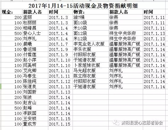 捐助人員為: 濟(jì)陽縣新市鎮(zhèn)付家村 付陽陽、 濟(jì)陽縣垛石鎮(zhèn)范家村 范雙喜 、濟(jì)陽縣太平鎮(zhèn)大馬村孤寡老人 李克業(yè) 濟(jì)陽縣太平鎮(zhèn)胡家村 胡欣雨