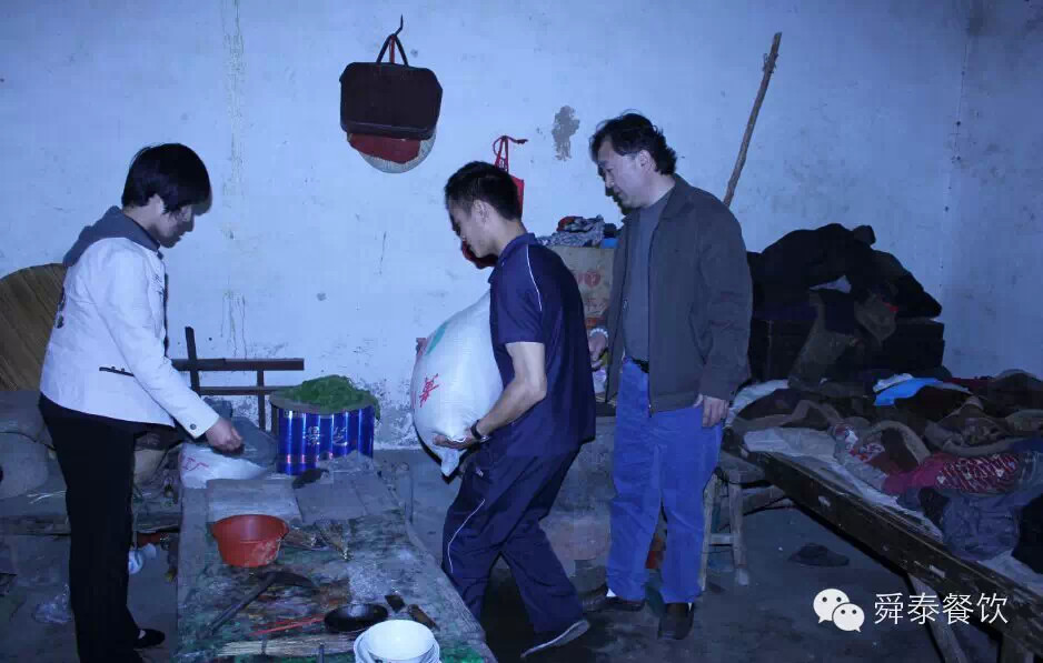 舜泰職工將大米搬到屋