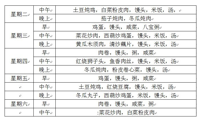懷仁中學(xué)一周食譜(10.08-11)